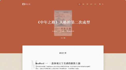 MeaWord是一款体现文字美感的极简主题,在大多数主题中,图片都都是体现主题美感的核心,但是这似乎把博客的重心从打磨文字偏向了寻找漂亮的图片,对此我希望这个主题能然我们专注于写作的同时依然保证网站美感。